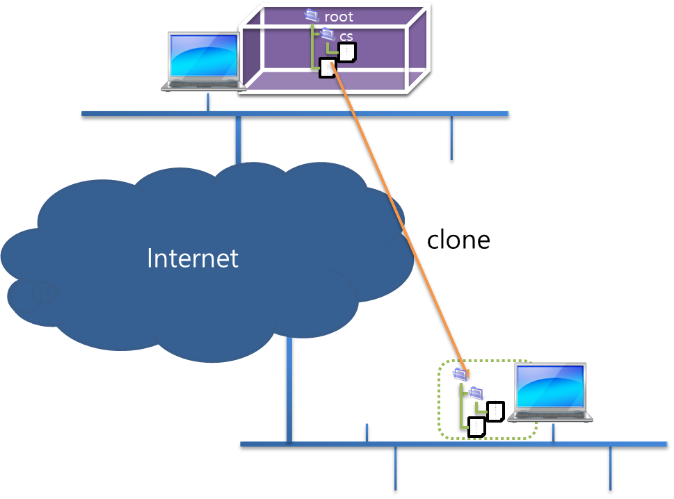 서로 다른 시간대에서 그리고 서로 다른 장소에서 작업을 하고 싶은 경우에는 CS 형식의 도구는 사용할 수가 없다. 그것을 위해서 등장한 버전관리 도구가 분산형 도구이다.