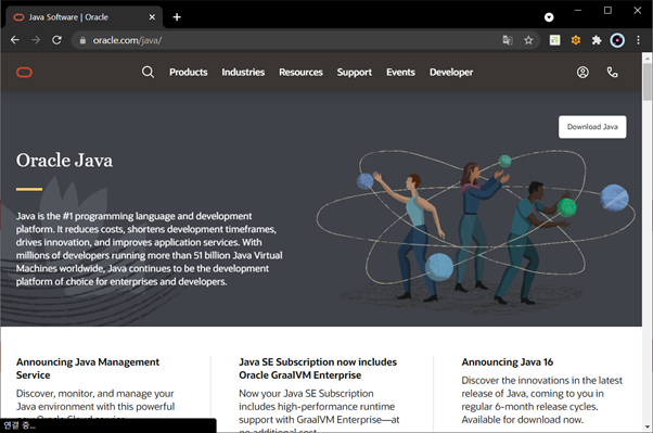 사가 Sun Microsystems 사를 인수함으로써 한 동안 오라클 사이트에서 자바 컴파일러를 다운로드 받아서 사용해왔다.