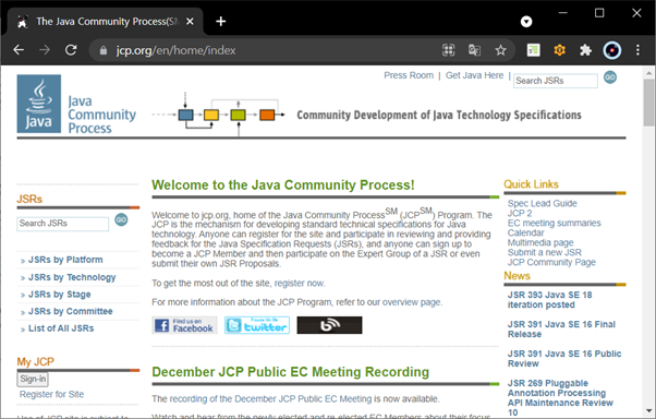 자바 표준을 정하고 OpenJDK를 만드는 곳은 JCP(https://jcp.org/en/home/index)라는 곳이다.