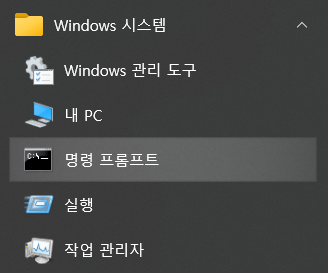 따라서 다음과 같은 [명령 프롬프트] 창을 실행한다. 실행 방법은 시작메뉴에서 [Windows 시스템] 그룹을 통해서 실행할 수 있다.